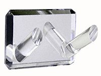 Polished Bevel Edges This CRL Acrylic Mirrored Robe Hook is available in both single and double hook configurations. There are no holes to drill, simply peel off the protective paper backing and apply directly to the mirror or glass surface. Color: Clear Width: 3 -1/2 in (88.2 mm) Height: 1-7/8 in (47.6 mm)